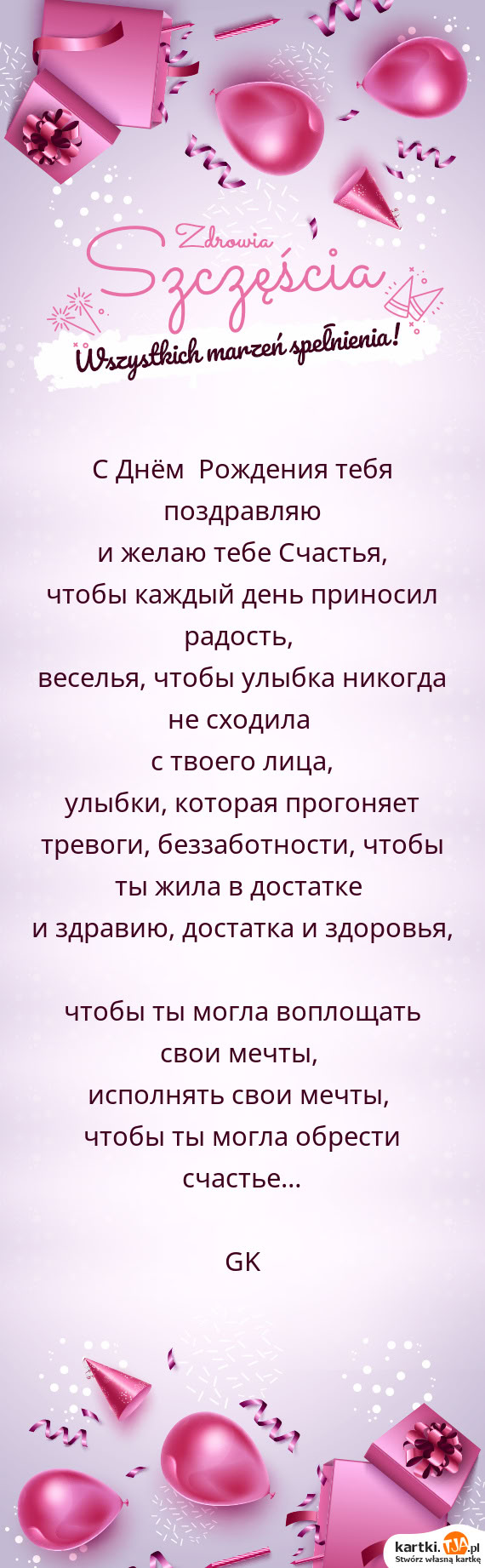 улыбки, которая прогоняет тревоги, беззаботности, чтобы ты жила в достатке