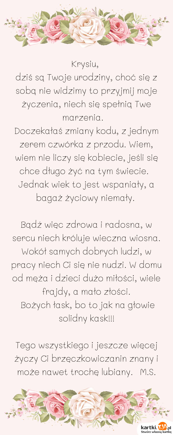 Tego wszystkiego i jeszcze więcej życzy Ci brzęczkowiczanin znany i może nawet trochę lubiany.🌹 M.S.