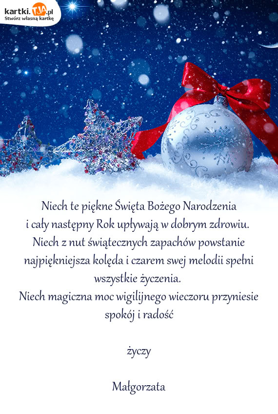 Niech z nut świątecznych zapachów powstanie najpiękniejsza kolęda i czarem swej melodii spełni wszystkie życzenia.