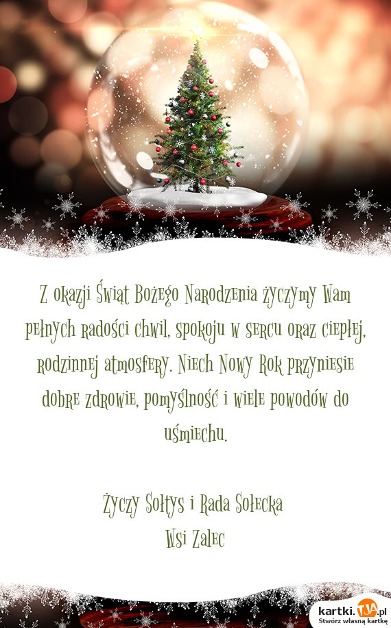 Z okazji Świąt Bożego Narodzenia życzymy Wam pełnych radości chwil, spokoju w sercu oraz ciepłej, rodzinnej atmosfery. Niech Nowy Rok przyniesie dobre zdrowie, pomyślność i wiele powodów do uśmiechu.