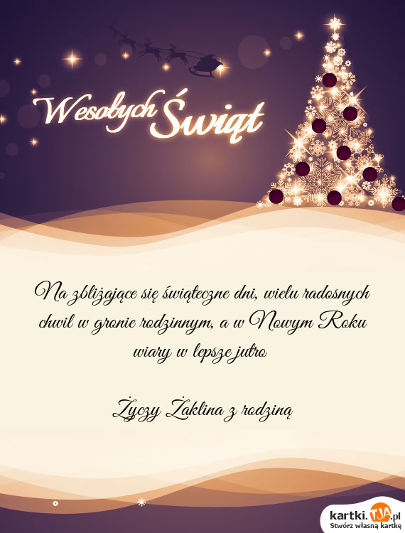 Na zbliżające się świąteczne dni, wielu radosnych chwil w gronie rodzinnym, a w Nowym Roku wiary w lepsze jutro