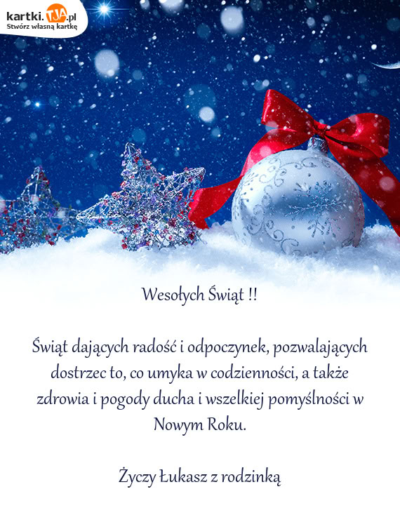 Świąt dających radość i odpoczynek, pozwalających dostrzec to, co umyka w codzienności, a także zdrowia i pogody ducha i wszelkiej pomyślności w Nowym Roku.