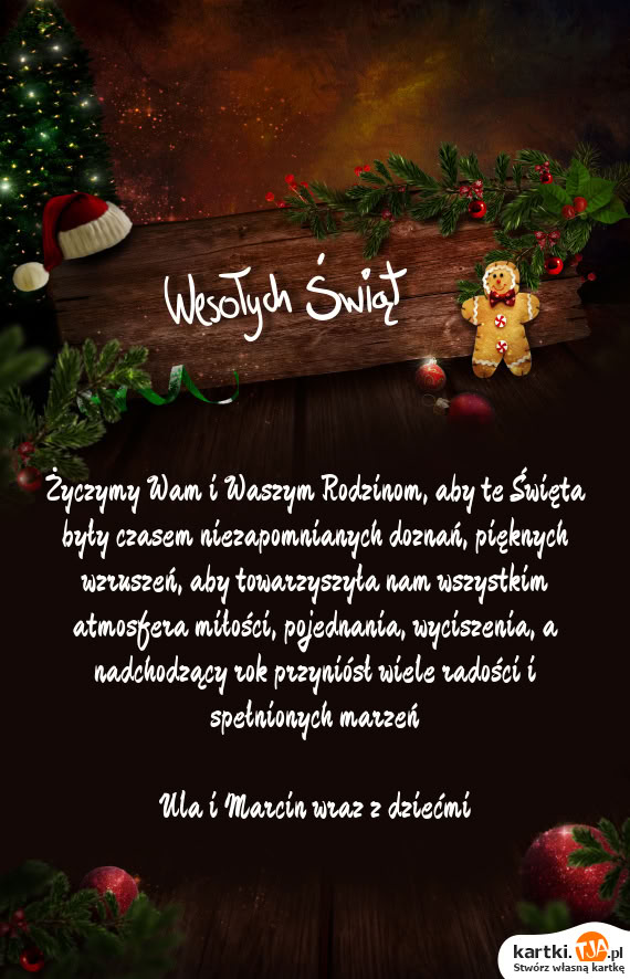 Życzymy Wam i Waszym Rodzinom, aby te Święta były czasem niezapomnianych doznań, pięknych wzruszeń
