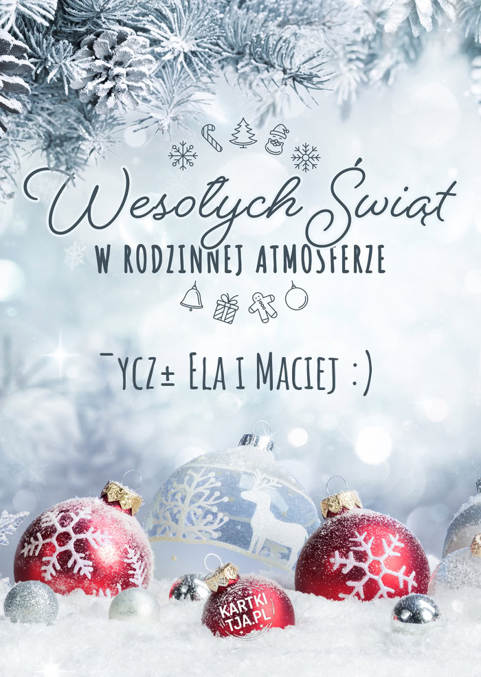 Wesołych Świąt w rodzinnej atmosferze Życzą Ela i Maciej :)