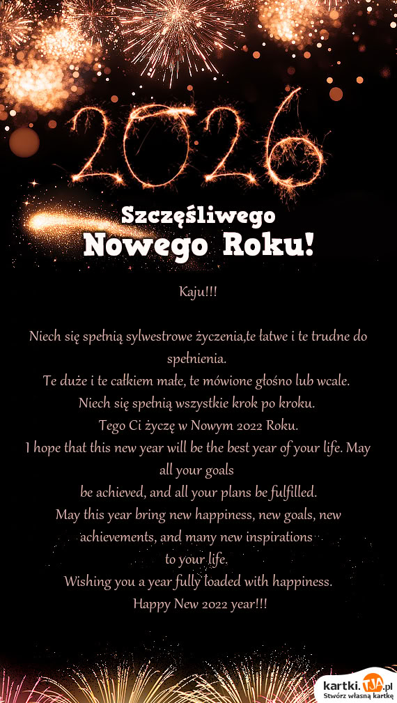 Niech się spełnią sylwestrowe życzenia,te łatwe i te trudne do spełnienia.