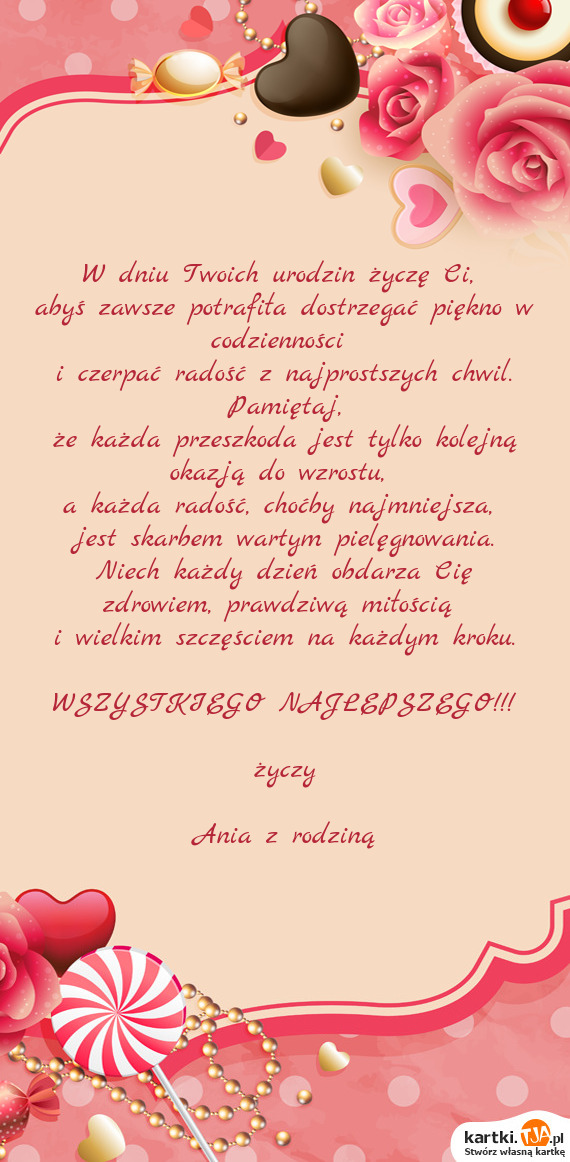 Niech każdy dzień obdarza Cię zdrowiem, prawdziwą miłością