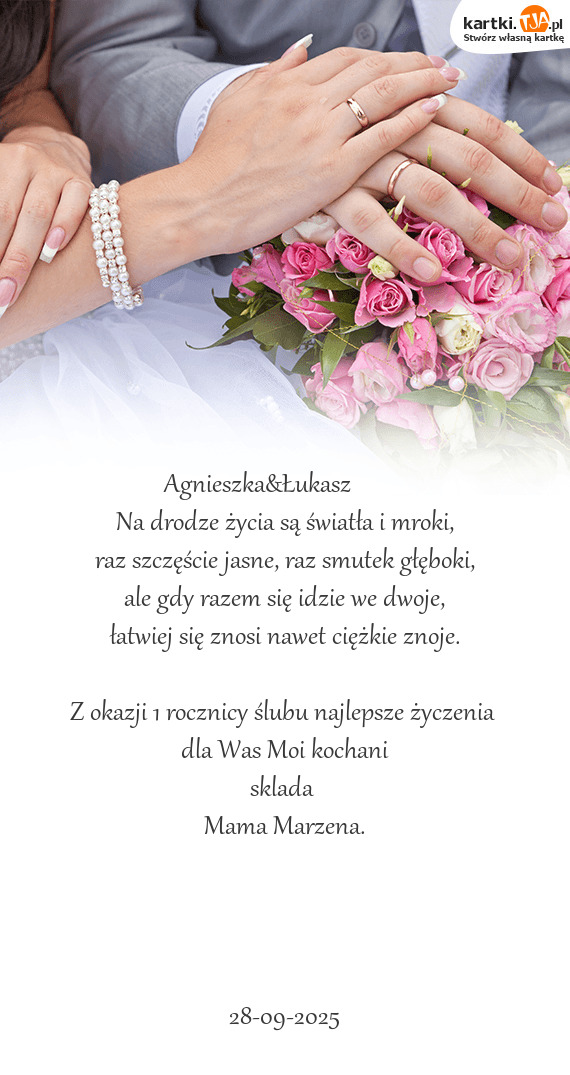 Z okazji 1 rocznicy ślubu najlepsze życzenia