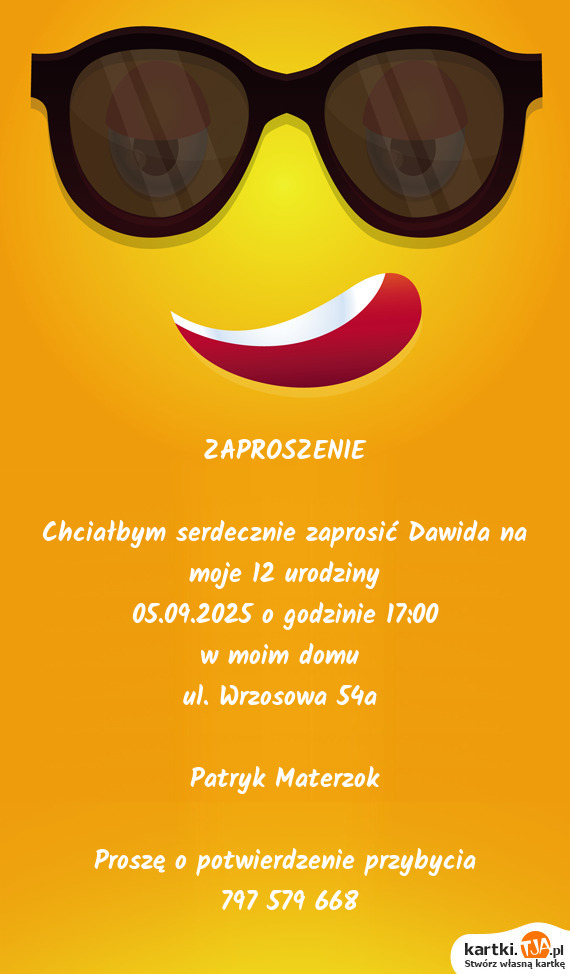 Chciałbym serdecznie zaprosić Dawida na moje 12 urodziny