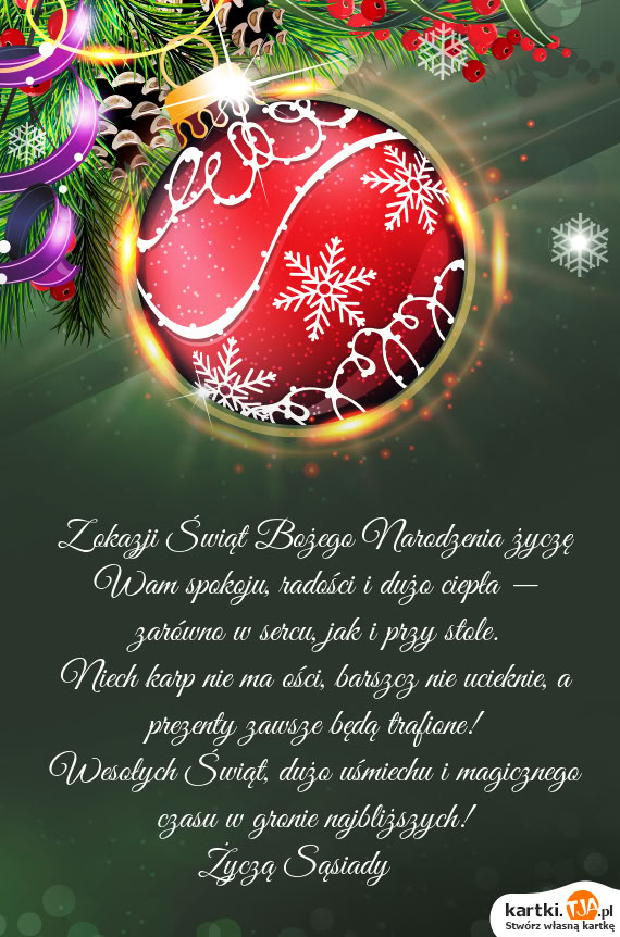 Z okazji Świąt Bożego Narodzenia życzę Wam spokoju, radości i dużo ciepła — zarówno w sercu, jak i przy stole.