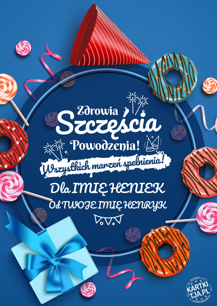 Dla IMIĘ HENIEK Zdrowia szczęścia powodzenia Od TWOJE IMIĘ HENRYK