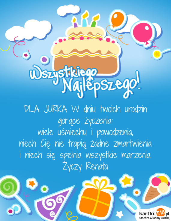 DLA JURKA W dniu twoich urodzin gorące życzenia: