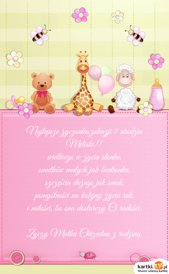 Najlepsze życzonka,zokazji 1 urodzin Meliski