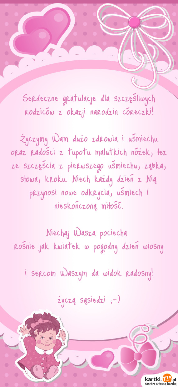 Serdeczne gratulacje dla szczęśliwych rodziców z okazji narodzin córeczki