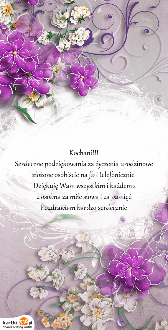 Serdeczne podziękowania za życzenia urodzinowe złożone osobiście na fb i telefonicznie