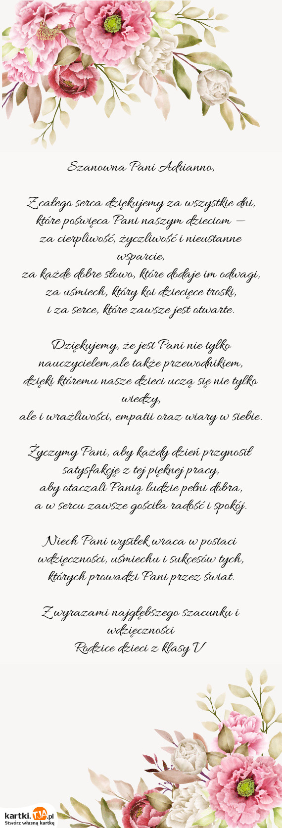 Z całego serca dziękujemy za wszystkie dni, które poświęca Pani naszym dzieciom —