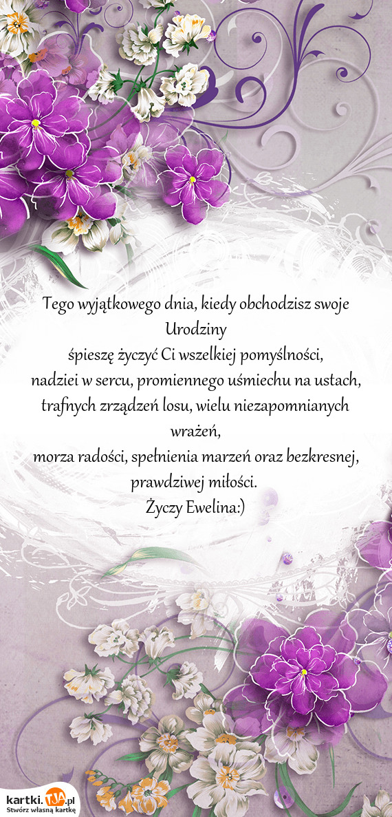 Tego wyjątkowego dnia, kiedy obchodzisz swoje Urodziny śpieszę życzyć Ci