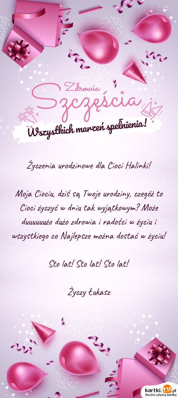 Moja Ciociu, dziś są Twoje urodziny, czegóż to Cioci życzyć w dniu tak wyjątkowym? Może duuuuuużo dużo zdrowia i radości w życiu i wszystkiego co Najlepsze można dostać w życiu!
