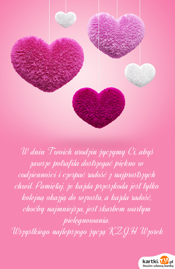 W dniu Twoich urodzin życzymy Ci, abyś zawsze potrafiła dostrzegać piękno w codzienności i cze