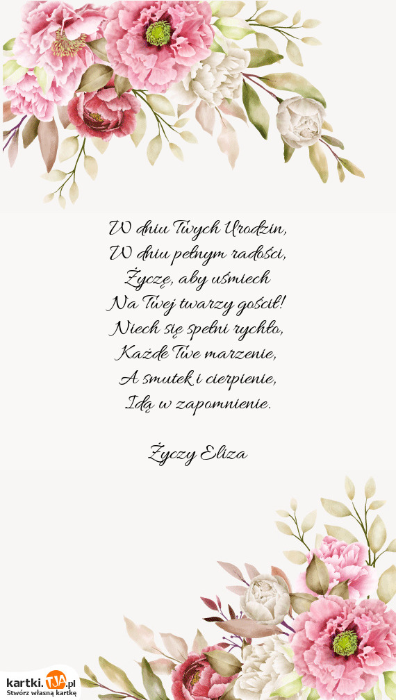 W dniu Twych Urodzin, W dniu pełnym radości, Życzę, aby uśmiech Na