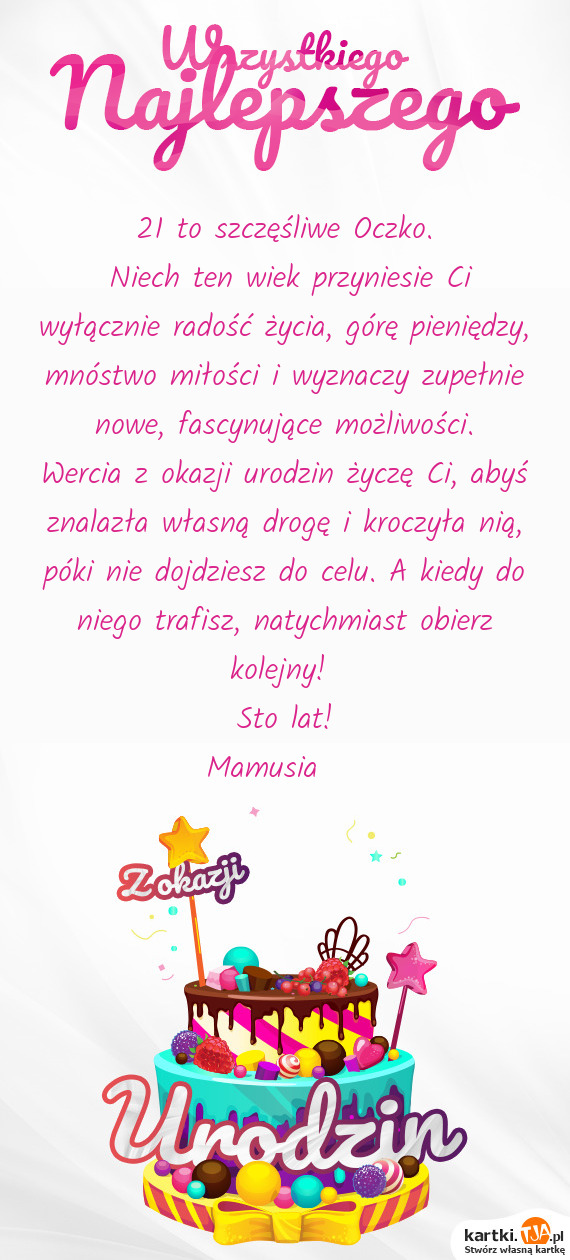 Niech ten wiek przyniesie Ci wyłącznie radość życia, górę pieniędzy, mnóstwo miłości i wyznaczy zupełnie nowe, fascynujące możliwości.