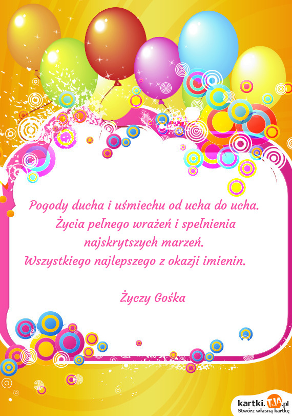 Wszystkiego najlepszego z okazji imienin. Gośka