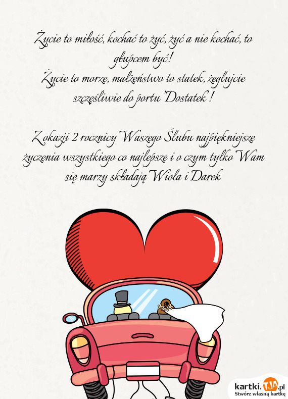 Z okazji 2 rocznicy Waszego Ślubu najpiękniejsze życzenia wszystkiego co najlepsze i o czym tylko Wam się marzy składają Wiola i Darek
