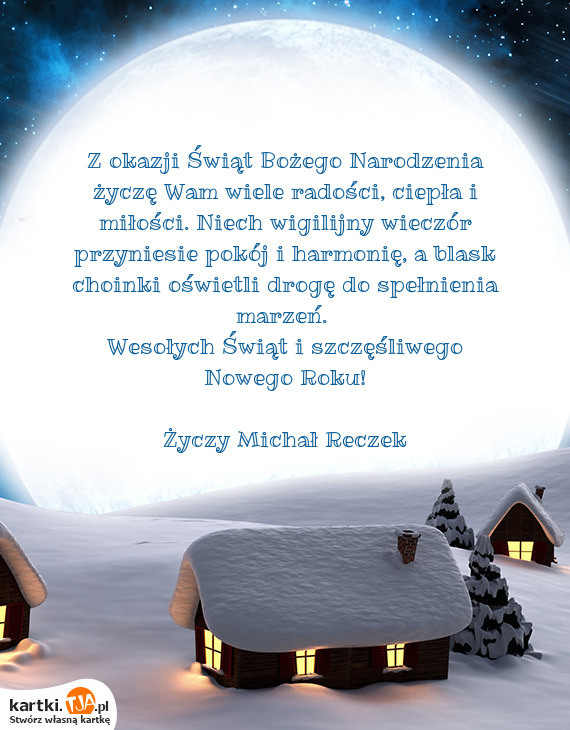Z okazji Świąt Bożego Narodzenia życzę Wam wiele radości, ciepła i miłości. Niech wigilijny wieczór przyniesie pokój i harmonię, a blask choinki oświetli drogę do spełnienia marzeń.