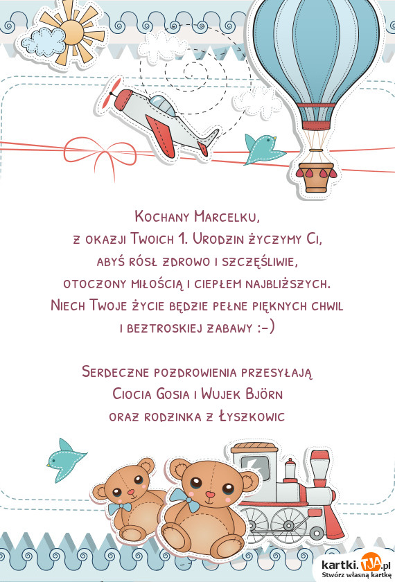 z okazji Twoich 1. Urodzin życzymy Ci,