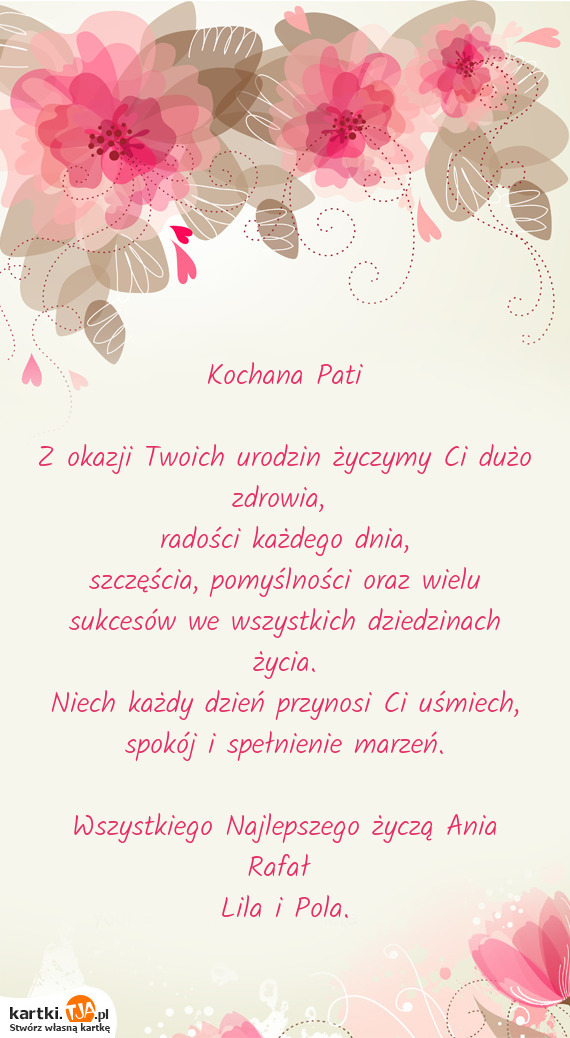 Niech każdy dzień przynosi Ci uśmiech, spokój i spełnienie marzeń.