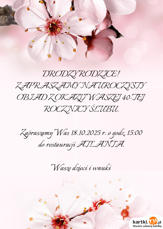 ZAPRASZAMY NA UROCZYSTY OBIAD Z OKAZJI WASZEJ 40-TEJ ROCZNICY ŚLUBU.