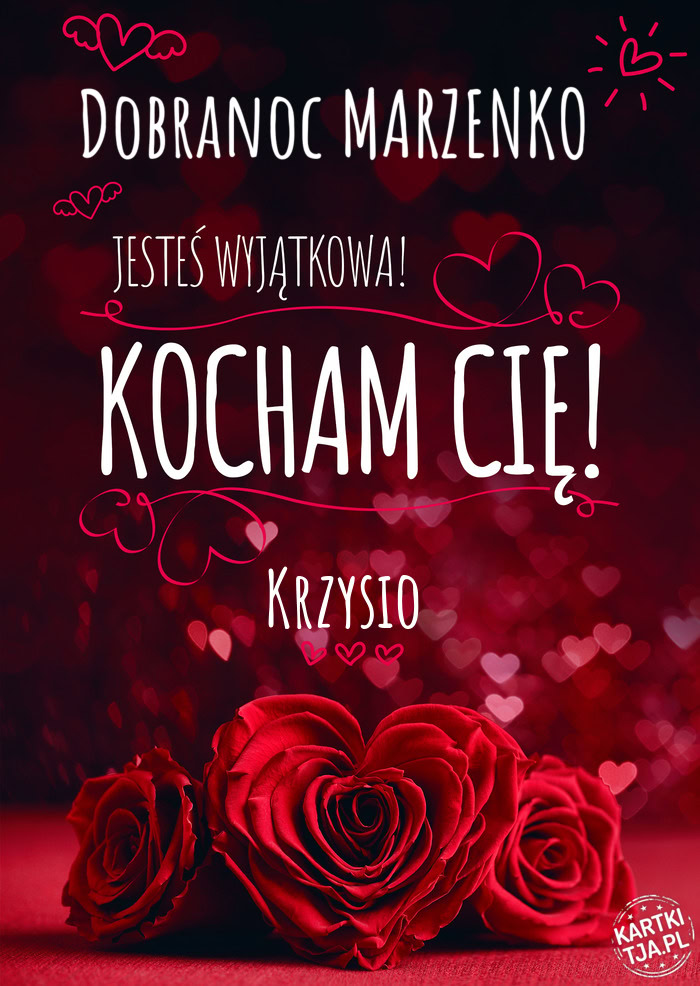 Dobranoc MARZENKO Jesteś wyjątkowa, Kocham Cię Krzysio