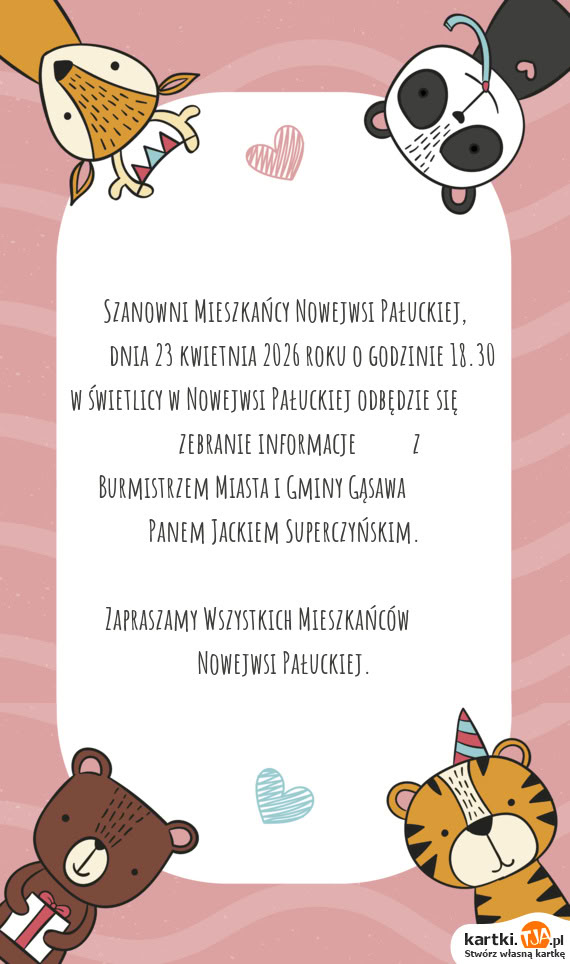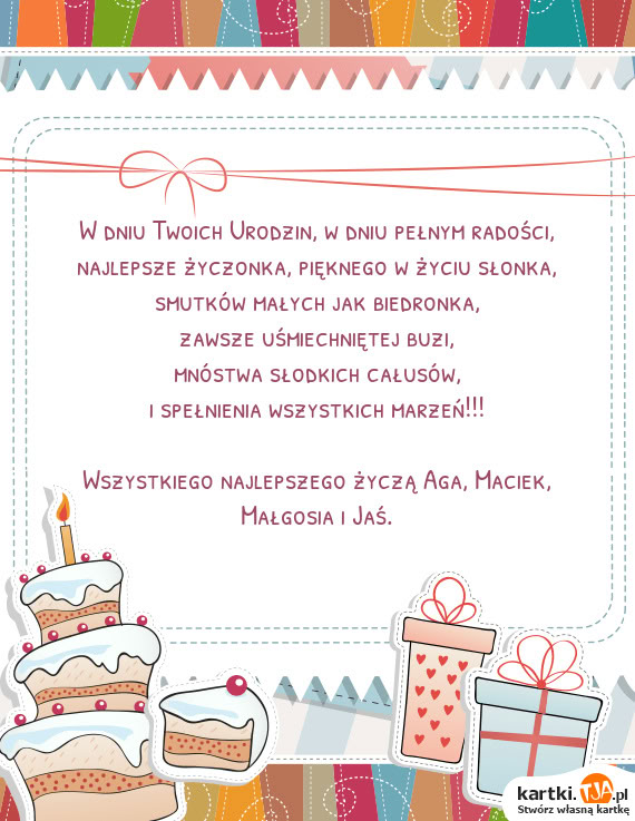 Atutem naszego serwisu jest możliwość spersonalizowania swojej e-kartki dokładnie w traki sposób, w jaki chcesz. Nie chcesz korzystać z dostępnych w sklepach gotowych kartek z wypisanymi już życzeniami? Chciałbyś, aby życzenia od Ciebie prezentowały się bardziej oryginalnie? Zaprojektuj e-kartkę u nas i prześlij ją mailem do szczęśliwych rodziców malucha!