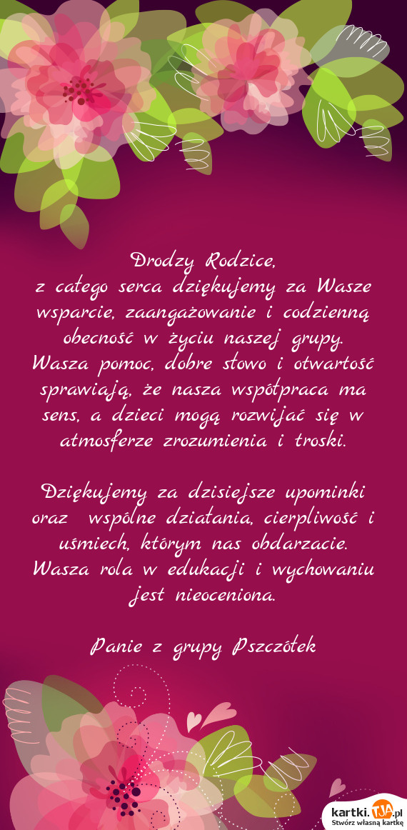 Z całego serca dziękujemy za Wasze wsparcie, zaangażowanie i codzienną obecność w życiu nasze