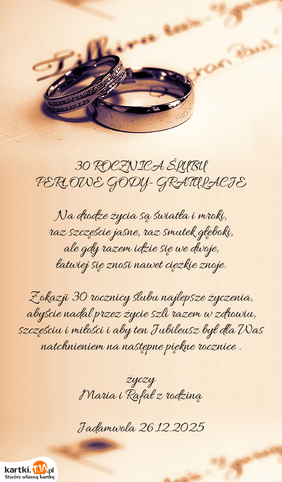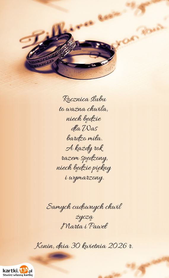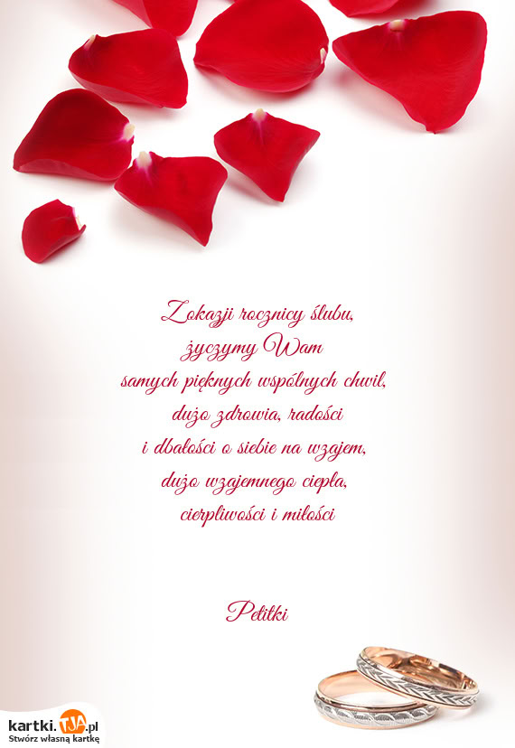 kartki.tja.pl na dobre zapomnisz o takich problemach. Niezależnie od tego, kiedy przypomniałeś sobie o ślubie bliskich, nigdy już nie będziesz musiał ślęczeć do późna nad stworzeniem kartki na ślub.