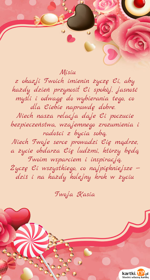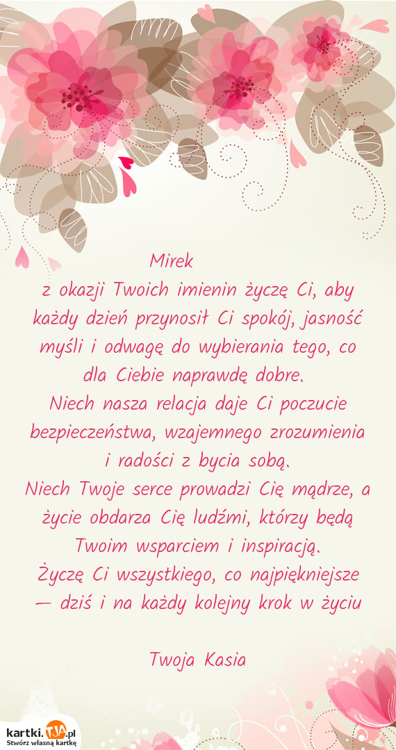 Z okazji Twoich imienin życzę Ci, aby każdy dzień przynosił Ci spokój, jasność myśli i odwa