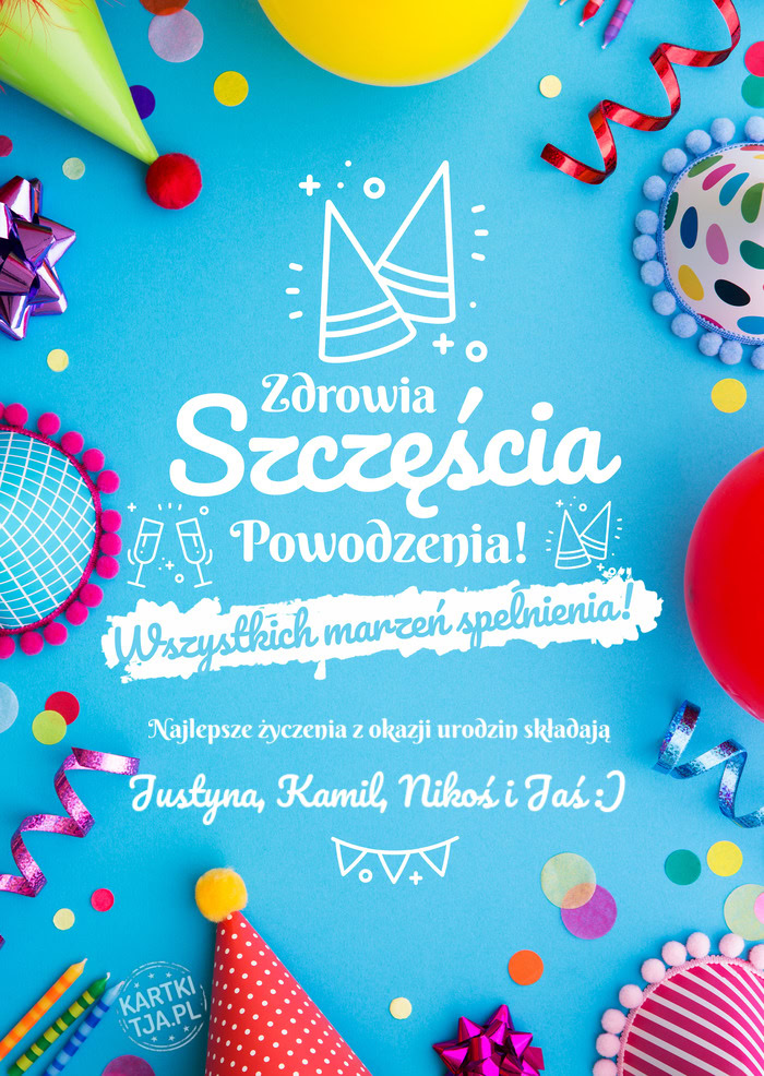 Najlepsze życzenia z okazji urodzin składają spełnienia marzeń Justyna, Kamil, Nikoś i Jaś :)