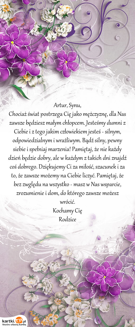 Chociaż świat postrzega Cię jako mężczyznę, dla Nas zawsze będziesz małym chłopcem. Jesteś